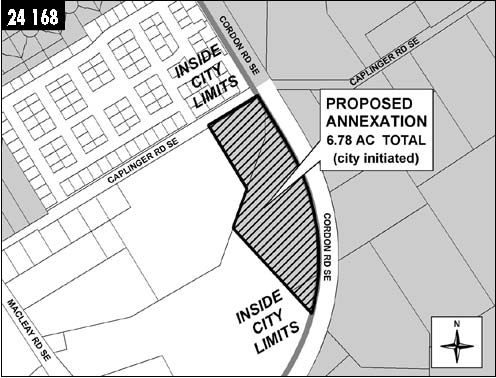 MEASURE NO. 24-168 City of Salem![]() Referred to the People By The City Council24-168 Measure Proposing Annexation of 6.78 Acres of Property IntoSalem Question: Should the Property located at 5290 Caplinger Road SE and 1125 Cordon Road SE Area be annexed? Summary: Approval of this measure would annex 6.78 acres of Property located at 5290 Caplinger Road SE and 1125 Cordon Road SE Area to the City of Salem. The Property is within the Urban Growth Boundary. Upon annexation, the Property would be zoned City of Salem RA (Residential Agriculture) and IP (Industrial Park). Explanatory Statement:If approved, this measure would result in annexation of 6.78 acres of territory (the Territory) to the City of Salem. The Territory is located at 5290 Caplinger Road SE and 1125 Cordon Road SE and designated in the Salem Area Comprehensive Plan as “Developing Residential” and ‘Industrial.” Zoning of the Territory if annexed would be RA (Residential Agriculture) and IP (Industrial Park). The RA zone district generally allows residential uses, select agricultural uses, playgrounds and parks, public buildings and child/adult care homes. The IP zone district generally allows agricultural crop production, construction businesses, manufacturing, wholesale trade, and select commercial services. The minimum lot size for single family dwellings is 4,000 square feet. This zoning designation allows a maximum density of 8 dwelling units per acre, assuming an allowance for public utilities and infrastructure. There is no minimum lot area requirement for the IP zone district. A complete description of uses in the RA and IP zone districts is available in Salem Revised Code (SRC) Chapters 145 and 157. If annexed, the Territory is estimated to have the fiscal impact of creating an annual surplus to the City’s General Fund (in year 2005 dollars) of $11,513 assuming 2 acres of the Territory develop with single family dwellings at a density of 5 dwelling units per acre and 5 acres of the Territory develop with industrial uses at a density of 22 employees per acre. Adequate public facilities exist to serve the Territory, in accordance with the city’s adopted budget, master plans, Capital Improvement Plan and urban growth management process as set forth in SRC Chapter 66. Additional information regarding the proposed annexation and zoning is available for public review at the Salem City Hall, Department of Community Development, Room 305, 555 Liberty Street SE, Salem, Oregon and on the City’s web site www.cityofsalem.net. Submitted by, Janet Taylor, On behalf of the Salem City Council No arguments opposed to or in favor of this measure were filed.